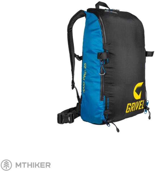 Könnyű, minimalista hátizsák Grivel Raid Pro 25 síeléshez és alpinizmushoz. Sokoldalú felhasználást és egyszerű kialakítást kínál. sílécek rögzítésének lehetősége RECCO systém párnázott vállpántok elülső cipzáras zsebek egyszerű deréköv jégcsákány tartásának lehetősége tartalom elérése felülről és hátulról kis súly párnázott hátsó rész