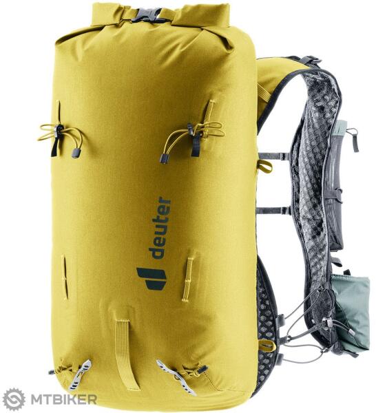 Könnyű, praktikus, vízálló mászóhátizsák. A tartós anyag, a ragasztott és hegesztett varratok és a feltekerhető fedélrendszer megakadályozza az esőt és a fröccsenő vizet. Súly : 480 g Űrtartalom : 16 l Kamrák száma : 1 Szín : sárga Márka : deuter Tevékenység : Több hosszban mászás, Hegymászás Nem : Uniszex Anyaga : 220D PA PLAIN TPU Esőkabát : Nincs esőkabát H
