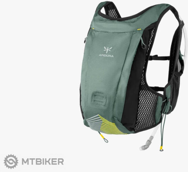 Apidura mellény 2 literes vízhólyaggal, sok zsebbel, légáteresztő 3D mesh anyaggal, fényvisszaverő elemekkel, mágnessel rögzített csővel. Apidura mellény kerékpározáshoz vagy futáshoz , melyben 2 literes beépített hidrozsák található. Többek között a mellény elején és hátulján sok zseb található. Légáteresztő 3D mesh anyagból készült, 70D ripstop anyaggal komb