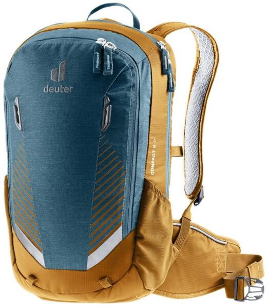 A mountain bike backpack for young up-and-coming talents: the Compact 8 Jr. Thanks to its ergonomic shoulder straps, adjustable chest strap and hip fins, it sits securely and comfortably on the back and stays firmly on the body even in fast curves. The bike backpack also impresses with its well thought-out features: a stowable protector holder at the bottom of the backpack, a practical helmet hold