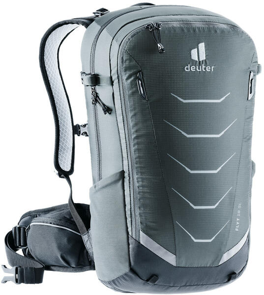 A Deuter Flyt 18 SL Kerékpáros hátizsák kihívást jelentő terepen kerékpározáshoz alkalmas. Ez az oka annak, hogy TÜV-tanúsítvánnyal rendelkező, eltávolítható gerincvédővel rendelkezik. Az értékeidet a rendszerezővel ellátott elülső zsebbe teheted. Emellett a párnázott telefonzseb is fontos része a hátizsáknak. Garantáltan tetszeni fognak a sisak rögzítésére szol