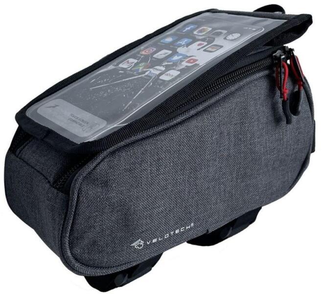1 részes telefontartós felsővázcső táska. A telefontartó tépőzárral kapcsolódik a táskához és teljesen levehető. Technikai adatok: - Anyaga: 600D vízlepergető polyester. - Szín: Sötét szürke, - Tépőzáras rögzítés a könnyű fel és leszereléshez. - Átlátszó PVC borítás a mobiltelefon használatához. - Merevített falak és cipzáras záródás. - Méret: 22 x 10,5