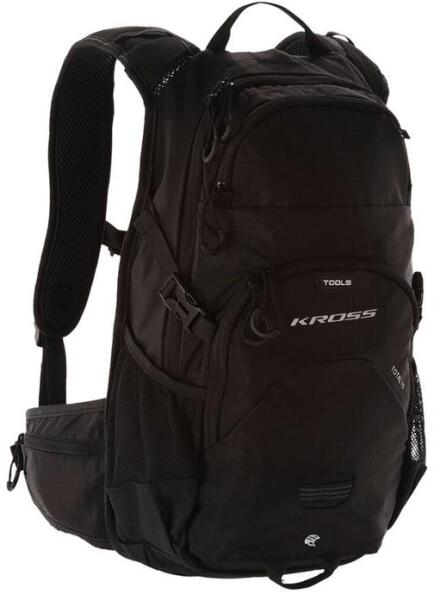 A Kross Total 15 literes kerékpáros hátizsák szakadásgátló rip-stop nylon anyagból készült, kényelmes hátkialakítással és számos praktikus tulajdonsággal rendelkezik. A dupla cipzárral zárható fő részbe ivózsák is rögzíthető, ezért a táska tetején rejtett nyílás található a cső kivezetésére. Ha nem használunk ivózsákot, akkor az erre kialakított gumiszegél