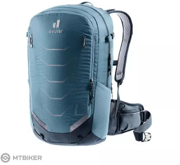 deuter Flyt 20 hátizsák Hátizsák a Deutertől , alkalmas kerékpáros kirándulásokhoz nehéz terepen vagy enduro lovagláshoz . Ezért hátul gerincvédőt talál. A védő TÜV tanúsítvánnyal rendelkezik, és levehető. Az utazás során szüksége lesz néhány szervizelemre . Könnyedén elhelyezheti őket az elülső zsebben a szervizszervezővel . A telefon hátulján egy speciális,