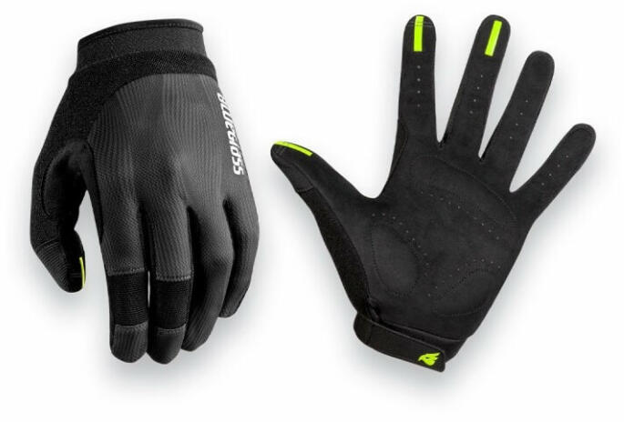 Kerékpáros kesztyű. Hosszú ujjú. A beépített D3O® ghost betét védi kezét ütközés esetén, míg a fékkar ujjain lévő szilikon markolat növeli a fékezéshez a szükséges precizitást. A tépőzáras zár lehetővé teszi a kesztyű gyors és egyszerű fel- és levételét. D3O® Ghost védelem Anyag: 72% poliészter 15% polikloroprén 8% elasztán 5% poliamid; Tenyér: 65% poliam