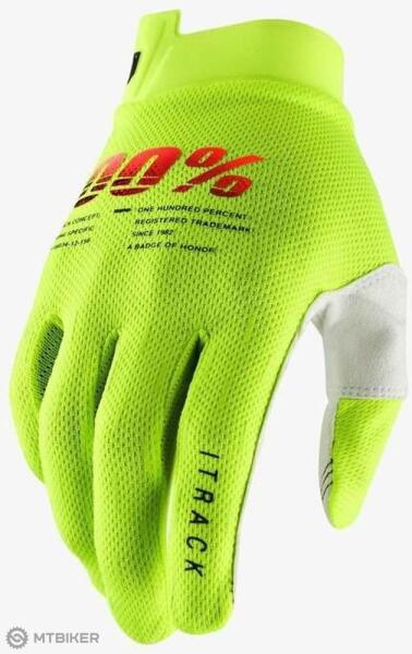 A könnyű iTRACK Youth motocross kesztyűk 100%-tól olyan könnyűek, hogy olyanok lesznek, mint a második bőröd. Az optimális légáramlást és nagy kényelmet biztosító Clarino® anyagának köszönhetően ezek a kesztyűk valóban rendkívül kényelmesek. A hüvelykujj és a tenyér körüli megerősítés csökkenti a hólyagok és a kidörzsölődés kockázatát. Az ujjakon és a t