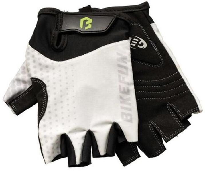 nyári kerékpáros kesztyű, unisex, hosszabb alsó csuklószegély a hüvelykujj külső része puha frottír az orr törléséhez műbőr tenyér zselés párnákkal és szilikon csúszásgátlóval légáteresztő felső oldal, megerősített markolat hurkok a kesztyűk könnyebb eltávolításához, fényvisszaverő elemek Anyaga: 60% nylon, 30% poliuretán, 10% elasztán zacskóba csomagolva