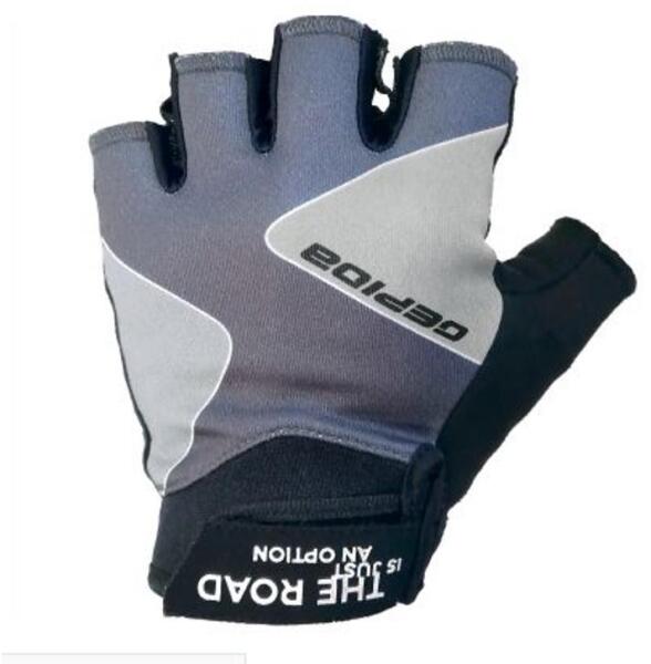 Rövid ujjú kesztyű kerékprozáshoz. Rugalmas anyag. Tépőzáras csuklórész. Tenyérvédő párnázás. Lélegző hálós a felső rész.