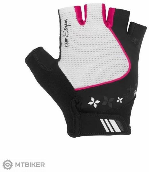 Női kerékpáros kesztyű, amely kiváló szellőzést és kényelmet biztosít. Az Etape Ambra rövid női kesztyű elasztikus anyagból és hálóból készült háttal kiváló szellőzést és kényelmet biztosít. A kesztyűn TakeOff szilikon fűzőlyukak találhatók a könnyű felvihetőség érdekében, antibakteriális frottír a hüvelykujjon az izzadság letörléséhez, valamint kény