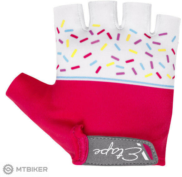 Etape Tiny gyermek rövid kerékpáros kesztyű rózsaszín/fehér színben. Anatómiai tenyérvarrás . Csúszásgátló tenyér. Rögzítés tépőzárral. Fényvisszaverő elemek : nem