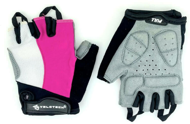 Velotech ujjatlan kerékpáros kesztyű, pink-fehér, S/M-es méret. F elnőtt rövid ujjú kesztyű. Kiváló minőségű alapanyagból a tartós használatért. Magas minőségű kidolgozás. Rugalmas lycra felsőrész, géles tenyérrész az extra komfortért. Rugalmas, tépőzáras csuklópánt. Mikroszálas izzadtságtörlő rész a hüvelykujjnál. Levételt segítő fülek. Szín: pink Mér