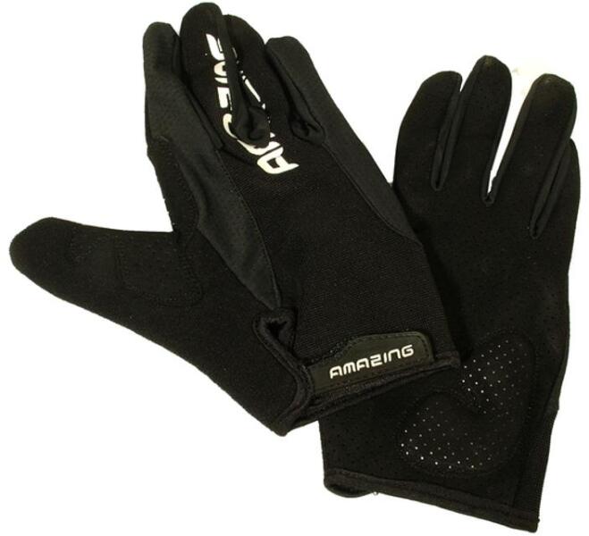 A felsőrész elasztikus és lyukacsos anyga kombinációjával. Fekete Amara lyukacsos tenyér a megtámasztási ponton szivacsos betéttel. Az igénybevett területeken megerősítés. A hüvelykujjnál nagy felületű frotír törlő felület.