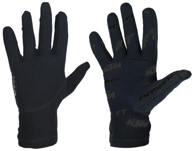 Elasztikus felsőrész. Fekete Amara tenyér. A tenéyren a csúszás megakadályozására szilikon nyomatok. Megerősítések a jobban igénybevett területeken. A hüvelykujjnál nagy felületű frotír törlő rész. A mutatújjon az érintőképernyű használatához kialakított rész.
