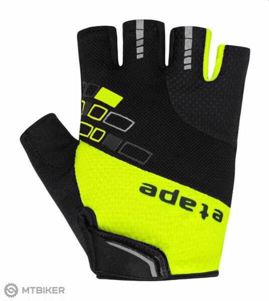 Férfi kerékpáros kesztyű rugalmas anyagból, légáteresztő hálóval és gél béléssel. A kellemes elasztikus anyagból készült Etape Winner rövidujjas férfi kesztyű lélegző hálóval kombinálva maximális kényelmet és szellőzést biztosít. A kesztyűben TakeOff szilikon fűzőlyukak találhatók a könnyű felhelyezés érdekében, kényelmes géllel bélelt tenyér , valamint