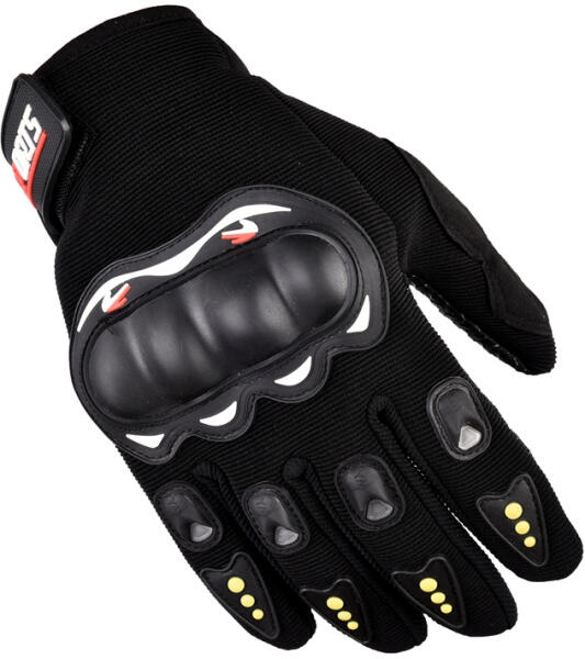 Motorkerékpáros telefonos kesztyű bokavédővel - fekete A tökéletes motoros kesztyűt keresed, amely nemcsak kiváló védelmet nyújt, de lehetővé teszi a telefonod használatát is? Fedezze fel a kifejezetten szenvedélyes motorosok számára tervezett, bokorvédővel ellátott motorkerékpáros kesztyűket. Az 50% PU-ból és 50% poliészterből készült kesztyű tartós és ellenáll