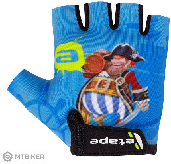 Etape Tiny gyermek rövid kerékpáros kesztyű kék színben. Anatómiai tenyérvarrás . Csúszásgátló tenyér. Rögzítés tépőzárral. Fényvisszaverő elemek : nem