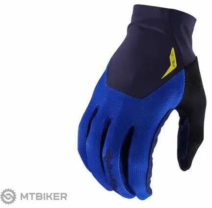 A Troy Lee Designs Ace könnyű felcsúsztatható kesztyű , amely egyrétegű lézerrel perforált tenyeret használ. Az ujjbegyeken szilikon nyomat található, aminek köszönhetően kényelmesebb lesz a kormány és a fék fogása. A kesztyű érintőképernyő kompatibilis. Szín : kék