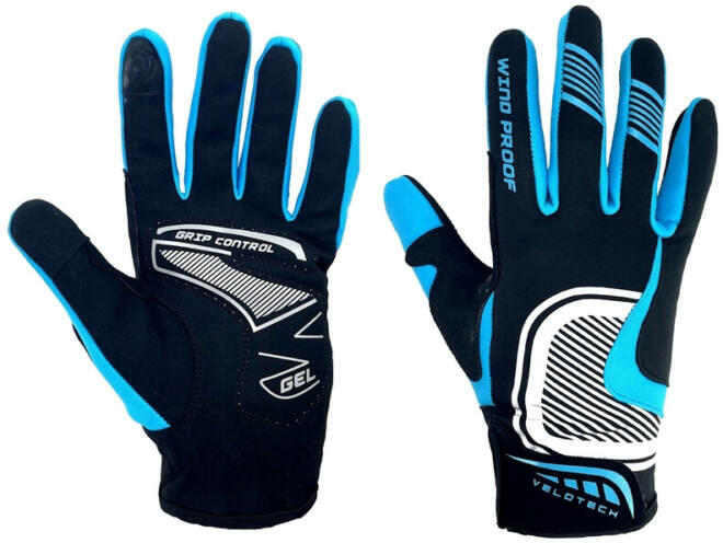 Velotech Gel hosszú ujjú kerékpáros kesztyű, kék-fekete, L/XL-es méret. Felnőtt hosszú ujjú kesztyű. Kiváló minőségű alapanyagból a tartós használatért. Magas minőségű kidolgozás. Rugalmas softshell felsőrész, géles tenyérrész az extra komfortért. Rugalmas, tépőzáras csuklópánt. Csúszásmentes szilikon nyomatok az ujjhegyeken a mobiltelefon használatához. Szí