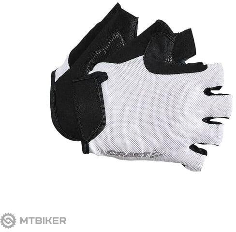 CRAFT Essence kerékpáros kesztyű zselés töltettel és tépőzárral. Anyaga : Hátlap - 73% újrahasznosított poliamid, 27% elasztán; Tenyér - 100% poliamid - gél töltés az ütéselnyelés érdekében - rugalmas rugalmas mandzsetta a csukló körül tépőzárral - Elasztikus és nagyon légáteresztő háló a jobb szellőzés érdekében a kéz hátsó részén - puha frottír a hüve