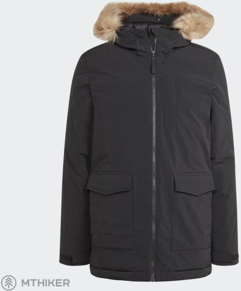 Vedd fel ezt a városi ihletésű adidas parkát, és készülj a hideg hónapokra. Szintetikus szigetelése a test közelében tartja a hőt, a vízlepergető felület pedig az eső ellenére is szárazon tart. Ha van kedve változtatni a megjelenésén, egyszerűen válassza le a kapucni szőrme bélését. A mellkason egy praktikus cipzáras zseb is található, amelyben minden szükséges tár
