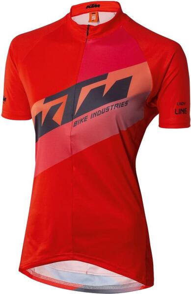 Női rövid ujjú kerékpáros mez. Elől zippzáras. Klasszikus KTM design. Hátsó részen 2 gumis zseb. Anyag: 100% poliészter.