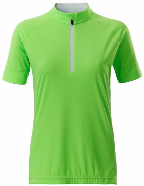 Női kerékpáros sport mez rövid cipzárral. Könnyű, kényelmes és gyorsan száradó anyagból készül, amely elvezeti az izzadságot. A derékrész rugalmas szilikonnal ellátott, a pólónak állógalléros szabása van cipzárral és állvédelemmel. A hátoldali részen egy praktikus nyitott háromrészes zseb és egy kis cipzáras zseb található. Anyag: 100% poliészter, 130 g / m2 A