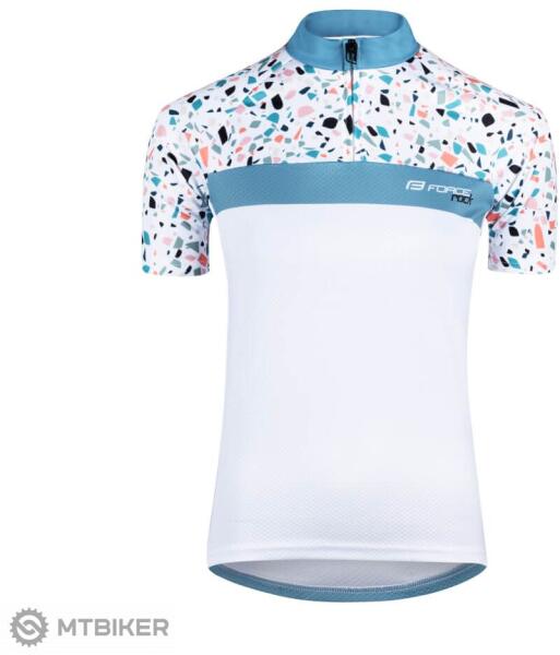 Gyerek rövid ujjú kerékpáros mez. 20 cm zippzár elől. Könnyűsúlyú, lélegző anyag. jó minőségű YKK zipzárak. Szilikon csíkok akadályozzák meg a ruha csúszkálását. Három nyitott zseb a hátulsó részen. Fényvisszaverő csíkok a maximális biztonság érdekében.