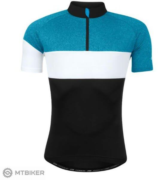 Férfi funkcionális kerékpáros mez cipzárral. Könnyű, kényelmes és gyorsan száradó anyagból készül, ami kiválóan elvezeti az izzadságot. A póló álló gallérral, cipzárral és állvédelemmel, valamint a derék résznél szilikonnal ellátott a rugalmasság érdekében. A hátoldali részen háromrészes nyitott zseb és egy kisebb cipzáras zseb található. Anyag: 100% polié