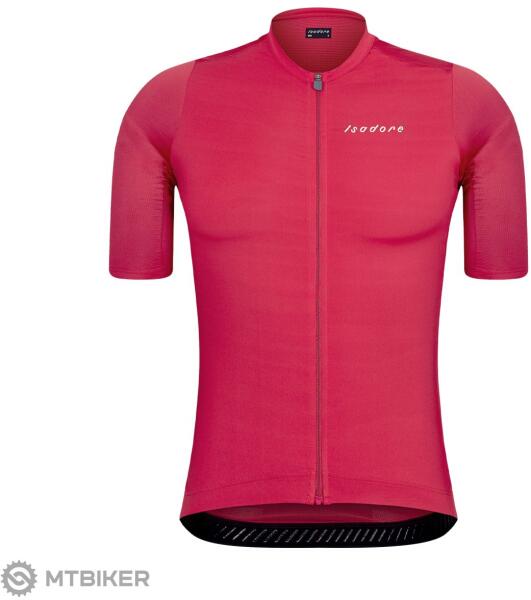 Isadore Debut mez A közepes kompressziós szint szabad mozgást biztosít a mindennapi vezetés során. A könnyű, légáteresztő kötött anyag az elülső és a hátsó részen perforált anyaggal egészül ki a hatékony nedvesség- és hőelvezetés érdekében a kritikus zónákban . A teljes alsó kerületet körülölelő szilikon szalag a helyén tartja a mezt , a 3 hátsó zseb pedig e