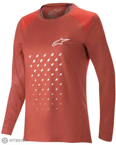 Alpinestars Stella ALPS 6.0 mez Kényelmes, hosszú ujjú női mez, mely gyorsan és hatékonyan elvezeti az izzadságot , emellett nagyon jól szellőzik. Modern poliészter és elasztán keverékéből készült a jobb tartósság és színtartósság érdekében. A mez lazább szabású , kényelmes viselet és minden irányban rugalmas. A szellőzést a háton és a hónaljban található szel