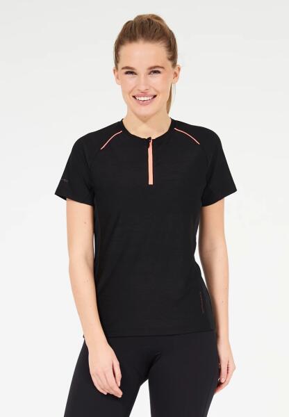 Női kerékpáros mez - rövid ujjú Típus: rövid cipzárral Anyag: 100% poliészter Szín: fekete Minta: egyszínű Zseb : zseb nélkül