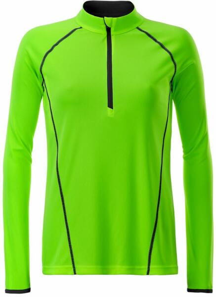 Női sportos és fitnesz hosszú ujjú funkcionális felső. Lélegző, gyorsan száradó anyagból. Cipzáras állvédelemmel. Anyaga: 100% poliészter, súlya 130 g/m2 A felső megvásárolható férfi változatban is.