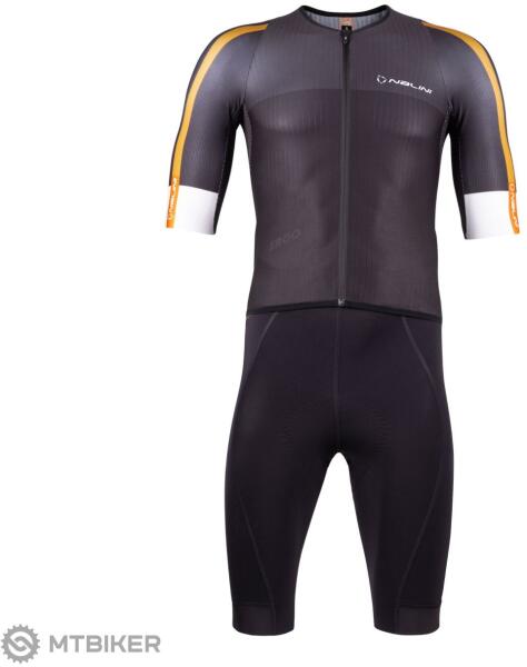 Ergonomikus és aerodinamikus jumpsuit a Nalini Ergo Line kollekcióból. A jumpsuit felső része az ujjakon és elöl csíkos szövetet, hátul pedig szuperkönnyű anyagot kombinál a jobb légáteresztés érdekében. A nadrágon Kintech kopásálló kompressziós szövetet használtak UV védelemmel. Fényvisszaverő részletek a jó láthatóságért az úton. Funkcionális paraméterek: Aer