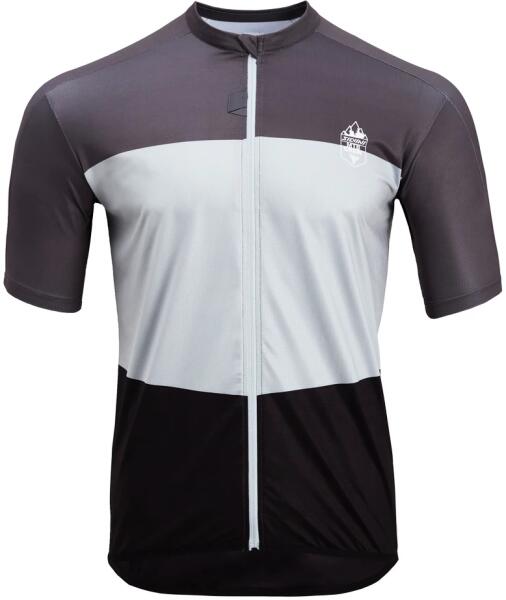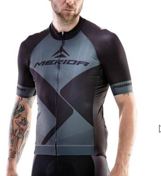 Kerékpáros férfimez - rövid ujjú Típus: teljes cipzáras szétnyitható Anyag: 10% elasztán, 90 % poliamid Szín: szürke Minta: logóval Zseb : hátsó