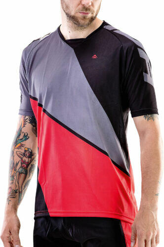 Rövid ujjú kerékpáros mez. Végig zippzáras. Rugalmas, lélegző, UV szűrős Air Leaf 100% poliészter anyag. 3 hátsó zseb.
