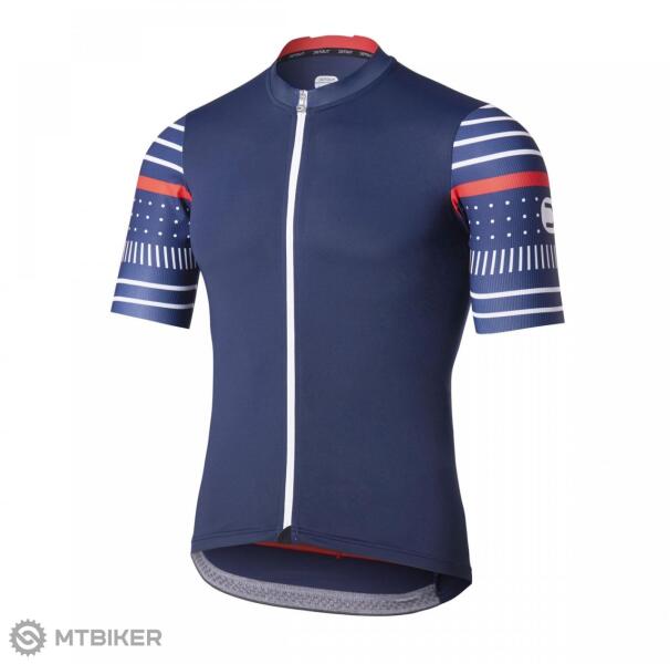 Rövid ujjú kerékpáros mez érdekes kivitelben, ergonomikus felépítésű lazább szabású, droptail, 4 zseb, csúszásmentes alsó szegély, poliészter, gyapjú, elasztán. Könnyű és rugalmas férfi mez rövid ujjú, meleg napokon kerékpározáshoz. A lazább szabást ergonomikusan kialakított gallér egészíti ki a kényelem érdekében. A teljesen nyíló cipzár felülről szövett