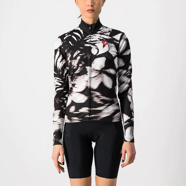 Női kerékpáros mez - hosszú ujjú Típus: teljes cipzáras szétnyitható Anyag: 100% poliészter Szín: fehér - fekete Minta: logóval Zseb : hátsó