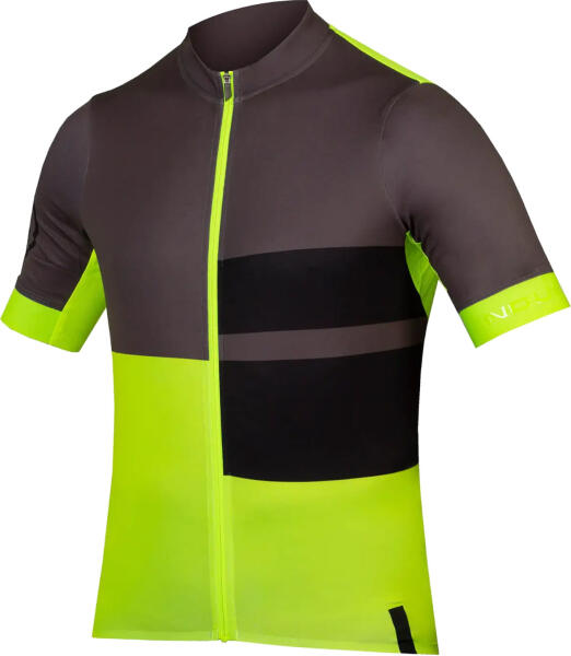 Rövid ujjú mez kerékpározáshoz. Jól látható, élénk szín. 3 hátsó zseb plusz egy zippzáras. Első zippzár. Lycra részletek az ujjak belső felén. Elől szélfogó panellal. Anyag: 95% poliészter - 5% elasztán.