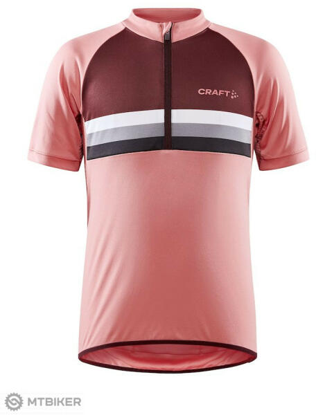 Gyermek kerékpáros mez CRAFT Bike JR rövid cipzárral. Anyaga: 100% poliészter - kellemes, rugalmas, hűsítő hatású anyag - ergonomikus szabás - rövid, párnázott cipzár kopás elleni állvédővel - az alsó rész vége rugalmas csővezetékben - szublimációs nyomtatás - háromrészes hátsó zseb - fényvisszaverő elemek Típus: junior Típus: kerékpáros mez Kategória: 3. rét