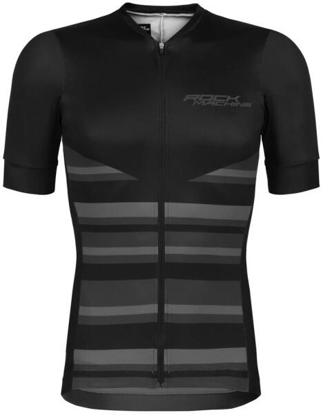 Kerékpáros férfimez - rövid ujjú Típus: teljes cipzáras szétnyitható Anyag: 8 % elasztán, 92 % polyester Szín: fekete - szürke Minta: logóval Zseb : hátsó