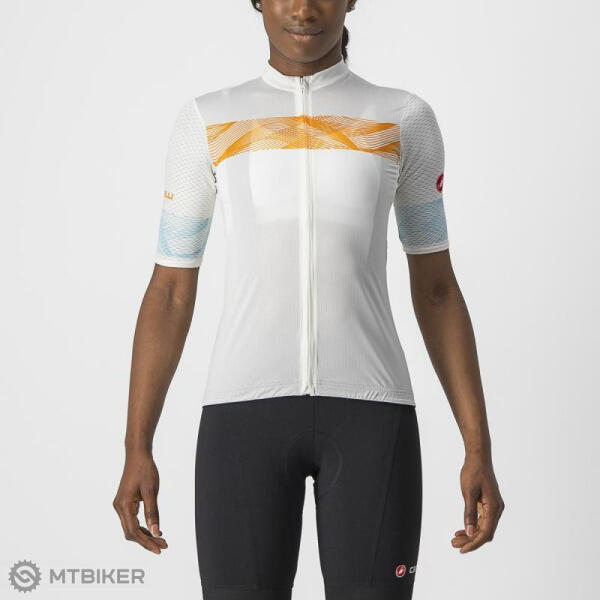 Castelli FENICE női mez Finom dizájncsík a mellkason, az ujjakon és a zseben a letisztult egyszínű , Competizione 2 szabású mezön, minőségi anyaggal és texturált dizájnnal kiegészítve. Egyszerre lenyűgöző és technikás. A Fenice mez grafikája a letisztult, technikás megjelenés tökéletes kombinációja elegáns csíkkal a mellkason, az ujjakon és a zseben. A Strada micro e