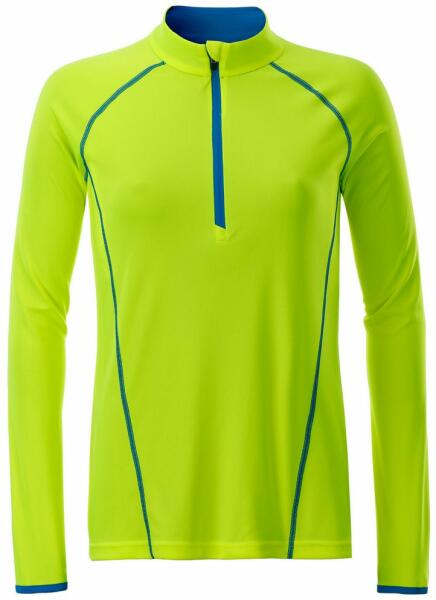Női sportos és fitnesz hosszú ujjú funkcionális felső. Lélegző, gyorsan száradó anyagból. Cipzáras állvédelemmel. Anyaga: 100% poliészter, súlya 130 g/m2 A felső megvásárolható férfi változatban is.