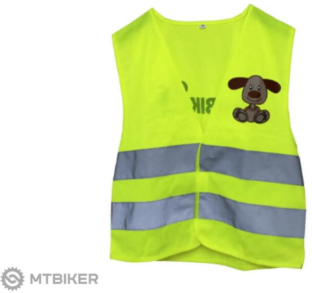Fényvisszaverő mellény gyerekeknek, amely kiváló kilátást biztosít. A mellény elején és hátulján két fényvisszaverő csík található. Kiváló kerékpáros kirándulásokhoz, iskolai tevékenységekhez, síeléshez Az elején kutyamotívum , hátul a FirstBIKE. com logó látható. S méret : 45 cm magas x 45 cm széles 3,5-6 éves gyermekek számára