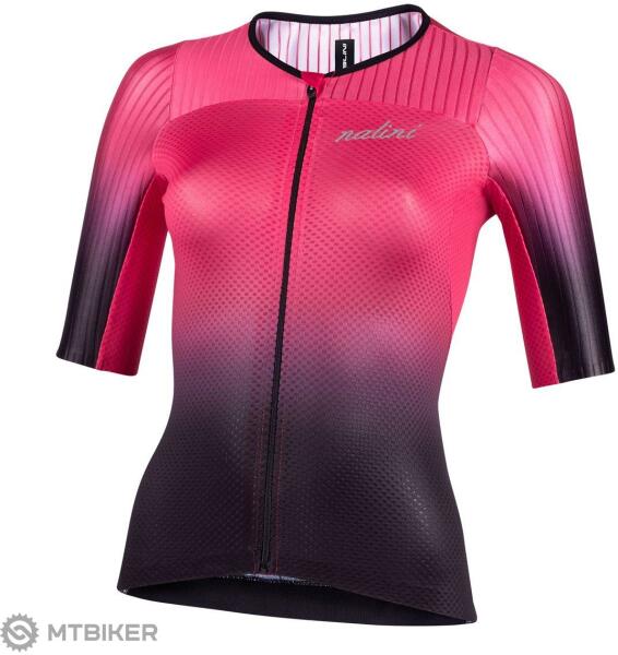 Kerékpáros mez a Pink Line női kollekcióból. A versenykivágású aerodinamikus mez olyan igényes női kerékpárosoknak készült, akik előnyben részesítik a kiváló jellemzőkkel és eleganciával rendelkező mezt. A trikó egyesíti a High Speed csíkos szövetet a vállán és az ujjakon, az elülső hálót pedig a jobb légáteresztés és a légáramlás érdekében. A hátul tal
