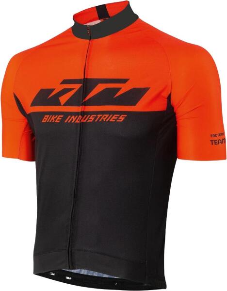 Férfi rövid ujjú kerékpáros mez. Végig zippzáras. Klasszikus KTM design. Hátsó részen 3 gumis zseb. Anyag: 100% poliészter.