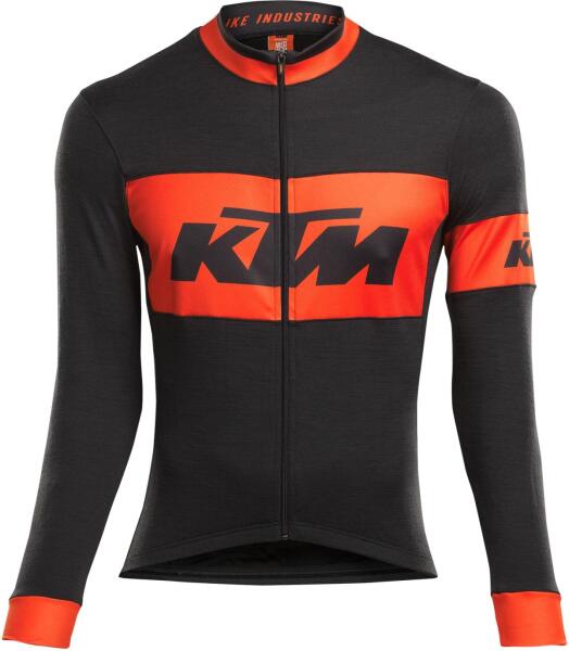 Férfi hosszú ujjú kerékpáros mez. Hátsó részén fényvisszaverő minta. Végig zippzáras. Klasszikus KTM design. Hátsó részen 3 gumis zseb. Anyag: 100% poliészter.