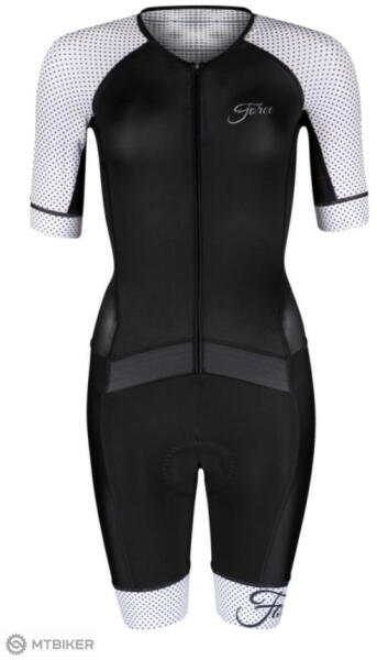 Force Points Lady versenyoverall kényelmes anatómiai olasz elasztikus interfész betéttel. Magas kompressziós anatómiai anyag , mindössze 225 g súlyú, lycra az elülső paneleken és az ujjakon, a hátoldalon háló a jobb szellőzés érdekében. Az overál két hátsó zsebbel , elasztikus szegéllyel a nadrágon, YKK cipzárral rendelkezik, +20 °C és afölötti hőmérsékletre tervez