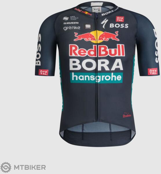 Sportos RedBull Bora Bomber mez A Red Bull BORA-hansgrohe World Tour csapat hivatalos nyári kerékpáros meze. A Sportful Bomber kerékpáros mezt maximális precizitással és a részletekre való odafigyeléssel tervezték, hogy tökéletesen megfeleljen a professzionális országúti versenyzők igényeinek a versenyek és az edzések során.