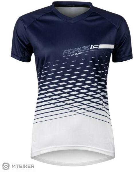 Force Angle női MTB mez rövid ujjú cipzár nélkül, lazább szabású kék-fehér kivitelben. Egy hátsó cipzáras zseb. Gyorsan száradó és izzadságelvezető anyag, fényvisszaverő elemekkel. Anyaga : 100% poliészter