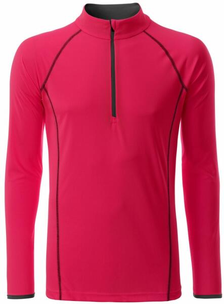Férfi funkcionális hosszú ujjú felső sporthoz és fitneszhez lélegző, gyorsan száradó anyagból. Cipzáros állvédelemmel ellátott. Anyaga: 100% poliészter, súlya 130 g/m2 A felső megvásárolható női változatban is.